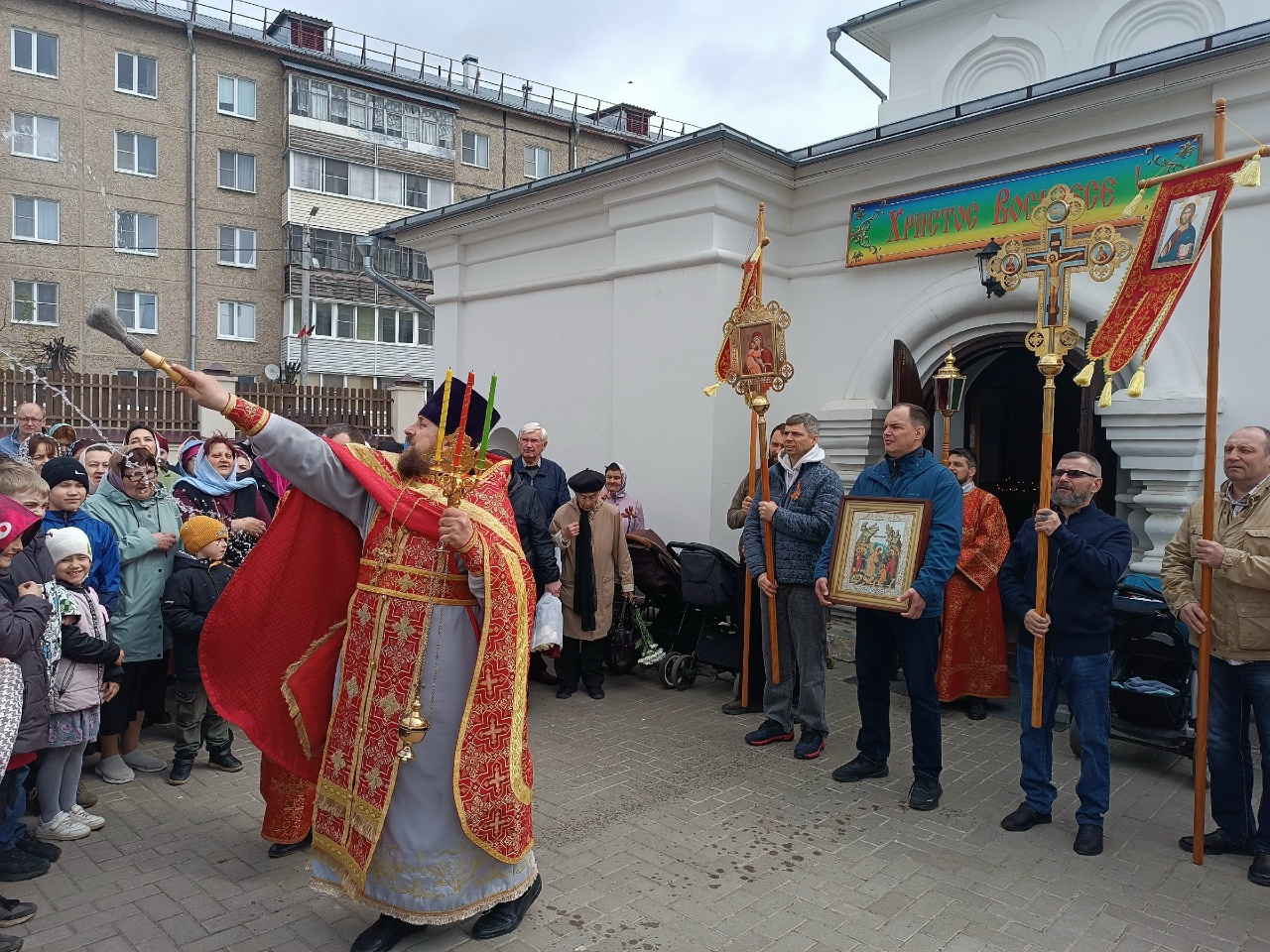 Затем перед Троицким собором состоялась встреча традиционного крестного хода с чудотворной иконой Пресвятой Богородицы.